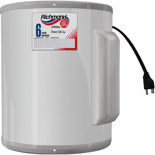 The Ariston 4-gallon point-of-use electric mini-tank water heater eliminates the wait time for hot water to come from the sink faucet. You can install the heater independently or in-line with a larger water-heating source. You need no hard wiring to power your unit; simply plug it into any standard outlet and this heater's ready to go. The glass-lined tank ensures long life, and the superior insulation provides quick recovery and greater energy efficiency. This 120-volt, 1500-watt water heater weighs 17 pounds and measures 14-by-14 by-12-1/4 inches. Ariston backs its heater with a manufacturer's 6-year limited warranty for the heat exchanger and a 1-year limited warranty for parts.
